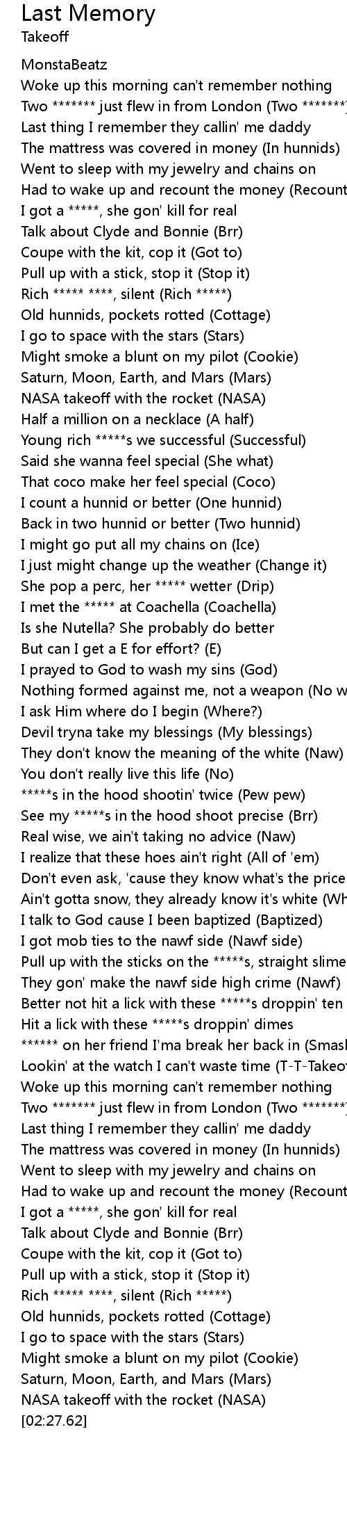 Woke up this morning can't remember nothing |