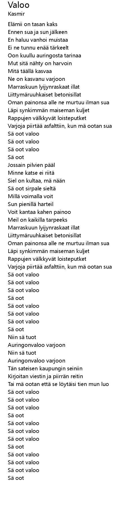 | [01:50.42] | Sä oot valoo |