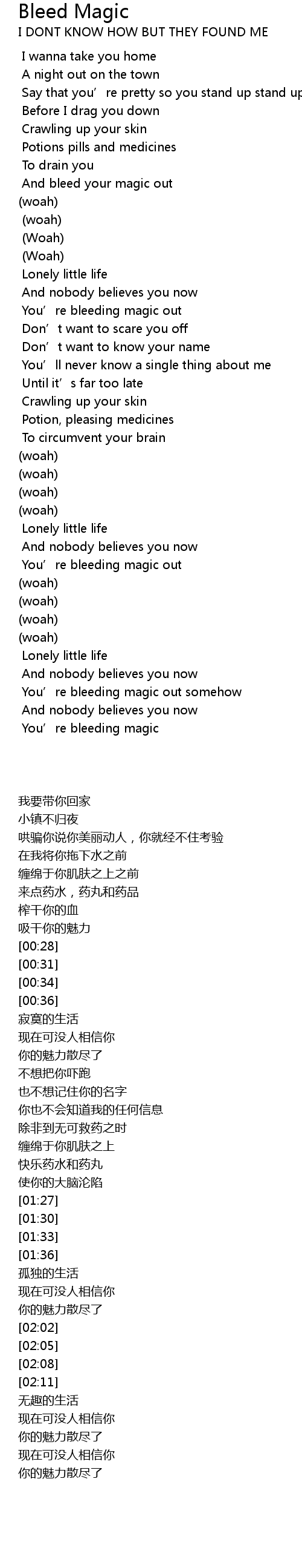 | [00:25] | And bleed your magic out |