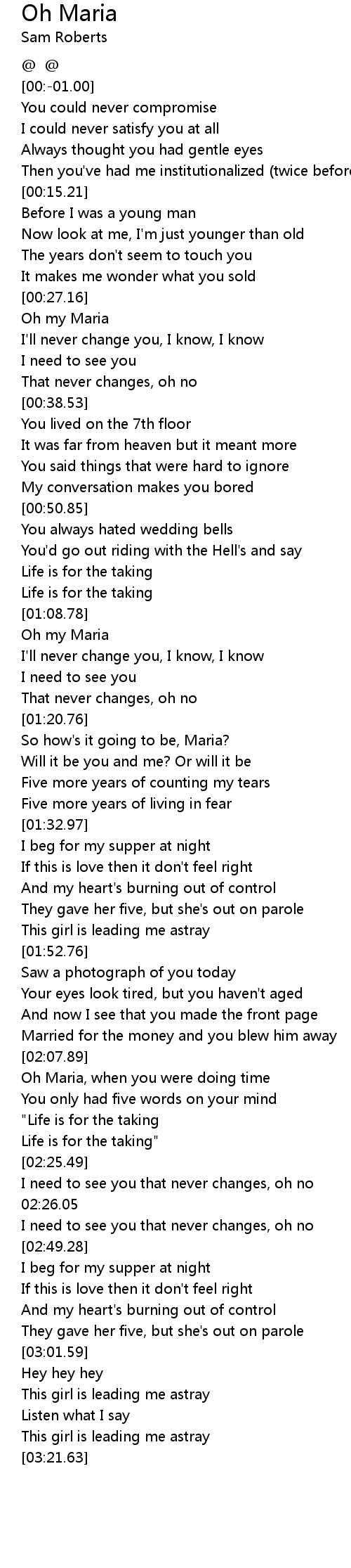 Oh my Maria, I'll never change you, I know, I know |