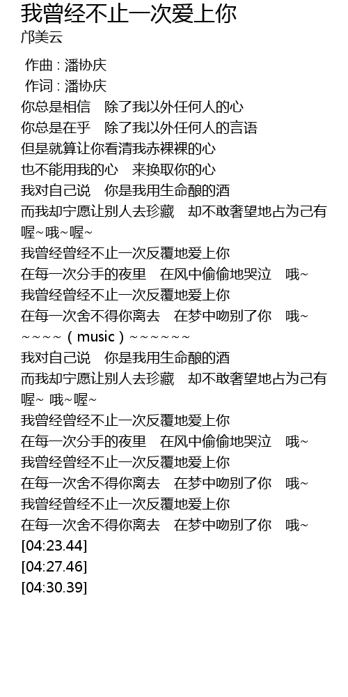 | [03:50.86] | 我曾经曾经不止一次反覆地爱上你 |