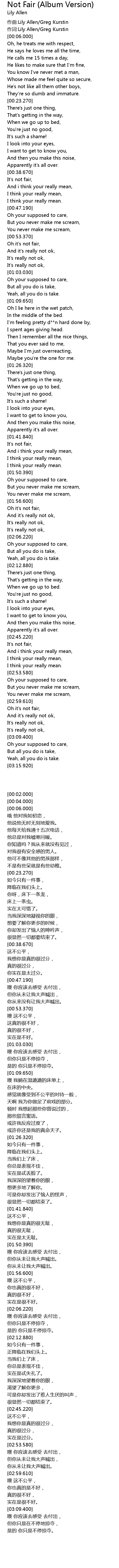 | [00:02.000] | 作曲:Lily Allen/Greg Kurstin |