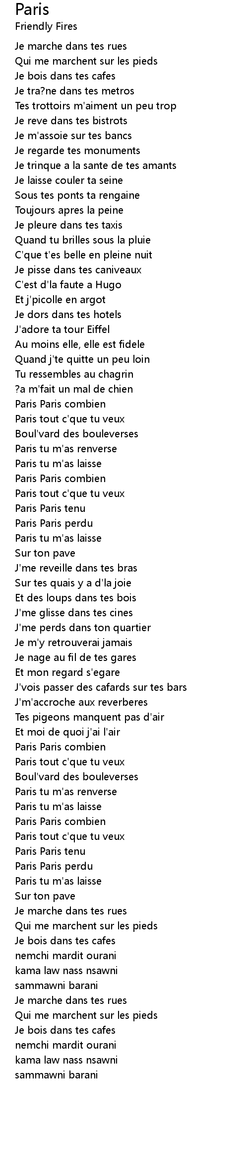 Paris tu m'as renverse |