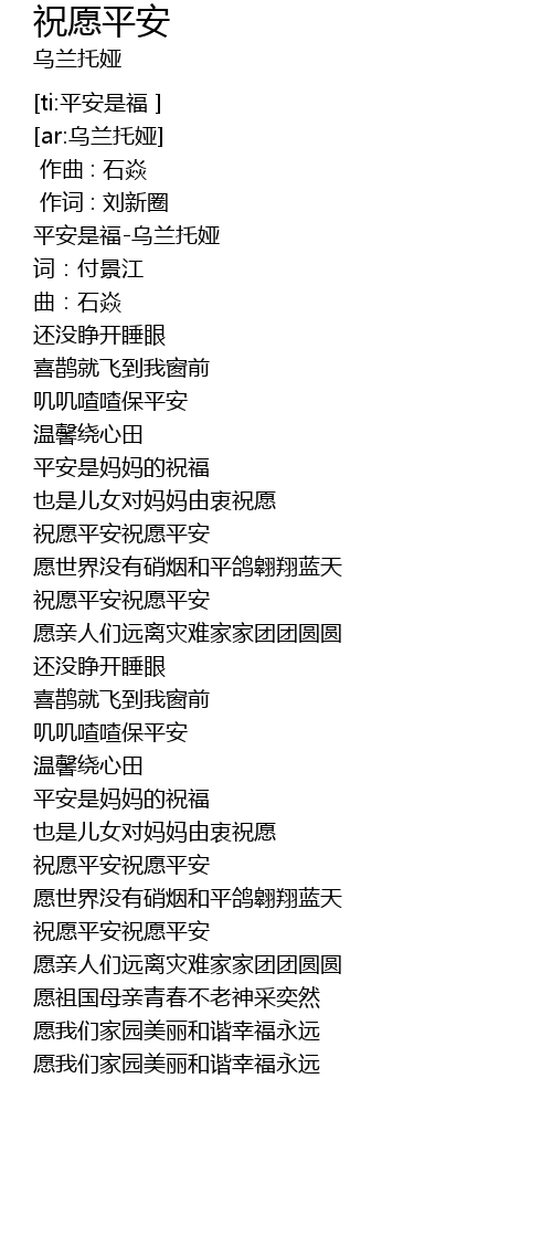 | [00:02.528] | 平安是福-乌兰托娅 |