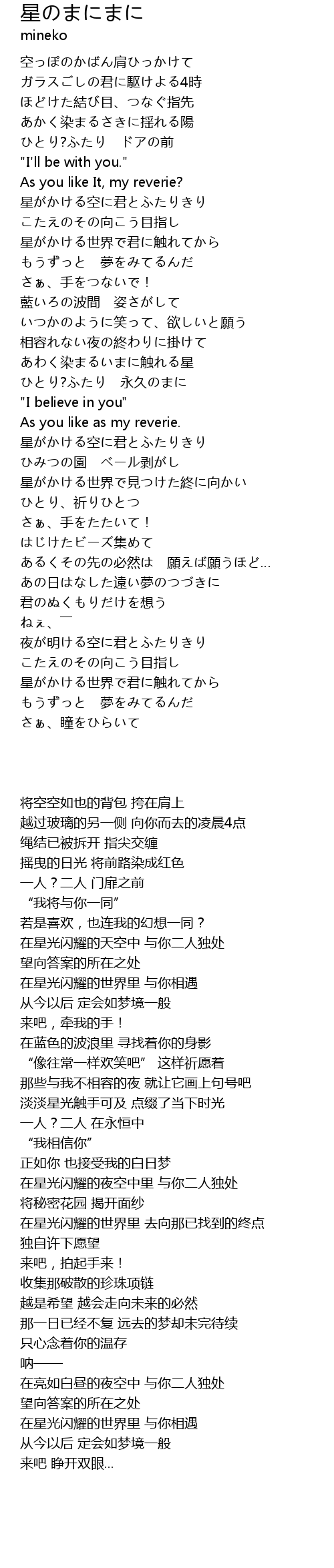 | [02:18.70] | 星がかける空に君とふたりきり |