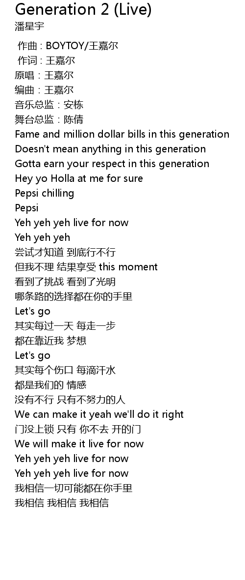 | [00:27.50] | Yeh yeh yeh live for now |