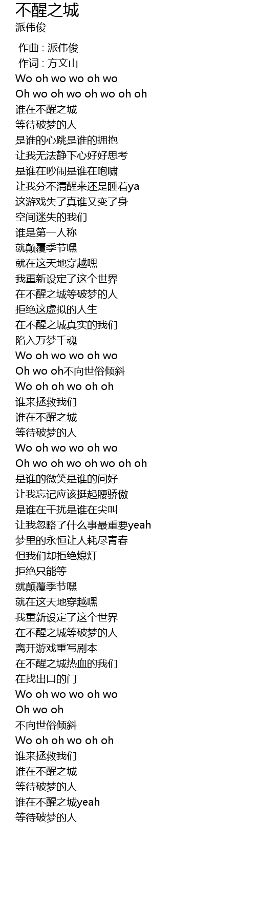 | [00:39.50] | 在不醒之城等破梦的人 |