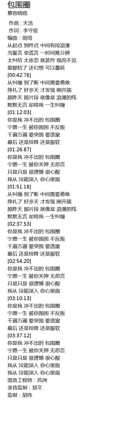 | [03:37.37] | 你是我 冲不出的 包围圈 |
