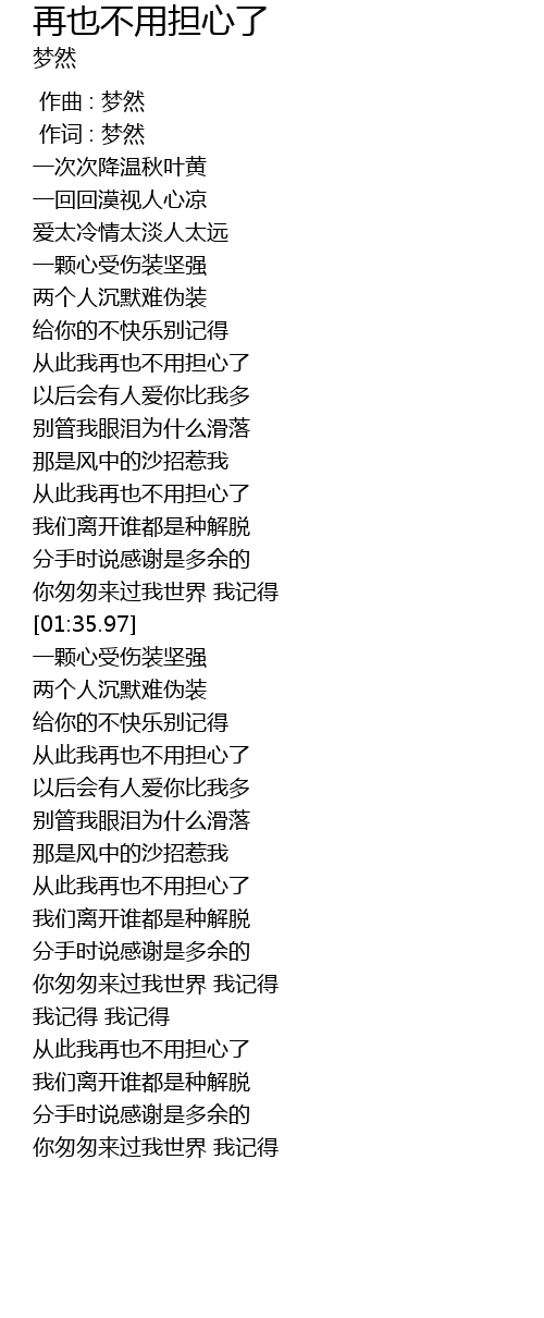 | [01:18.35] | 从此我再也不用担心了 |