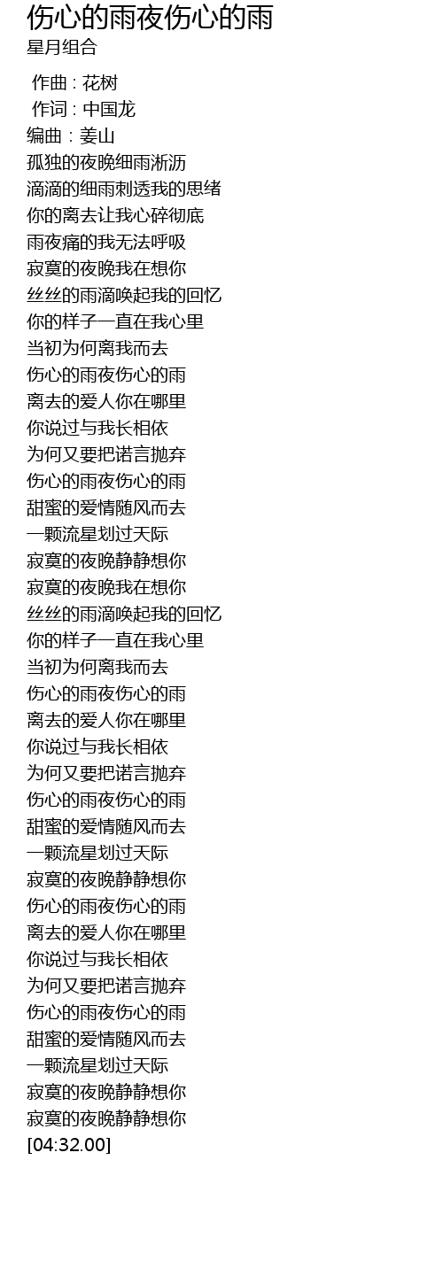 | [03:34.41] | 伤心的雨夜伤心的雨 |