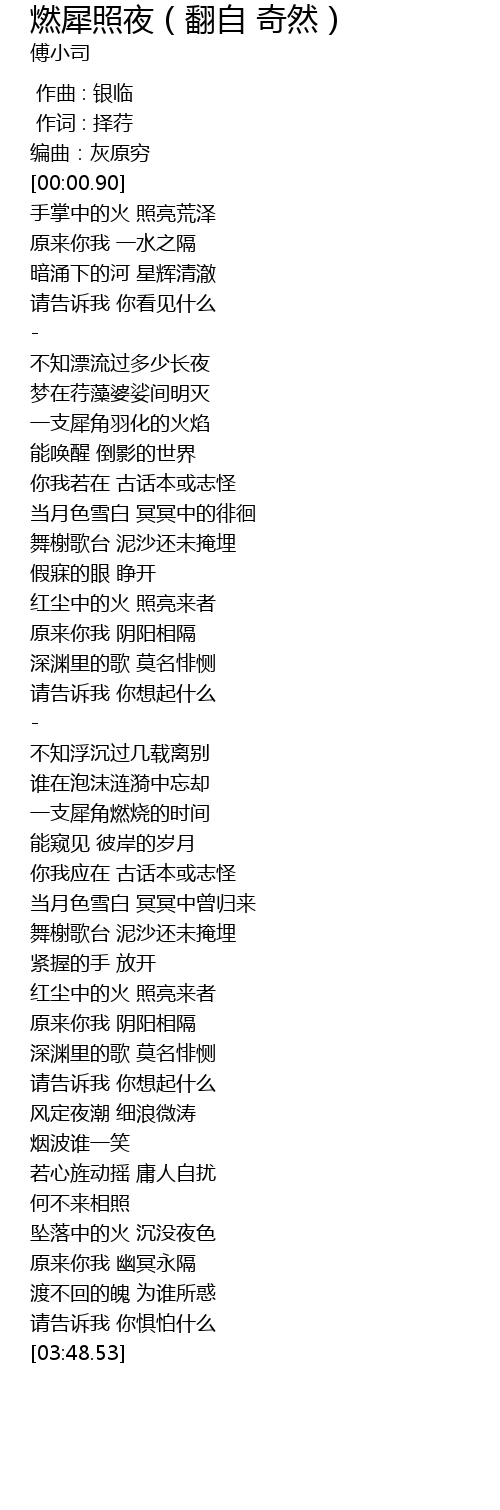 | [00:53.31] | 一支犀角羽化的火焰 |