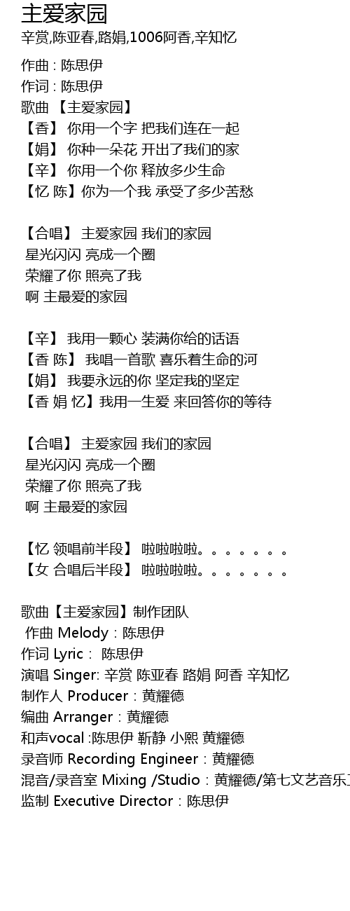 | hé chàng zhǔ ài jiā yuán wǒ men de jiā yuán | |