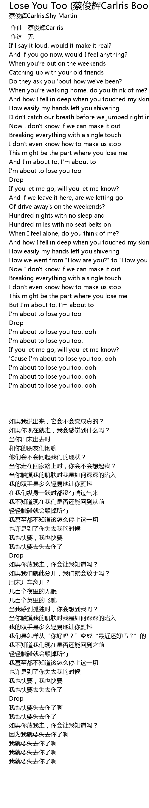 | Song | Lose You Too (蔡俊辉Carlris Bootleg) |