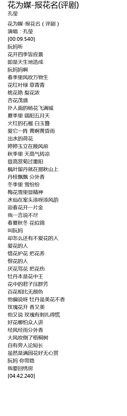 | [00:04.510] | 花为媒-报花名(评剧) |