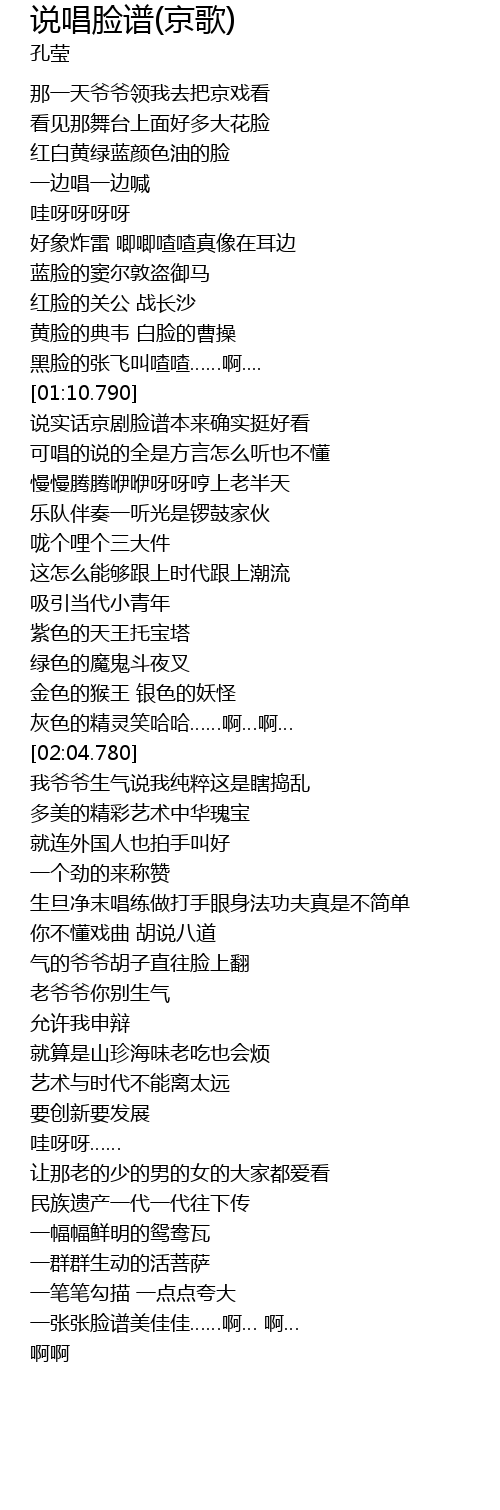 | [01:16.120] | 说实话京剧脸谱本来确实挺好看 |