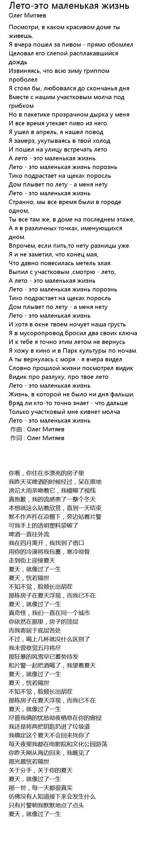 作词 : Олег Митяев |