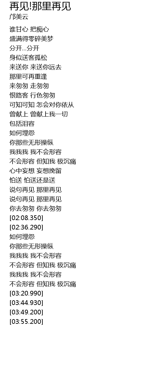 | [02:01.189] | 你去匆匆 你去匆匆 |