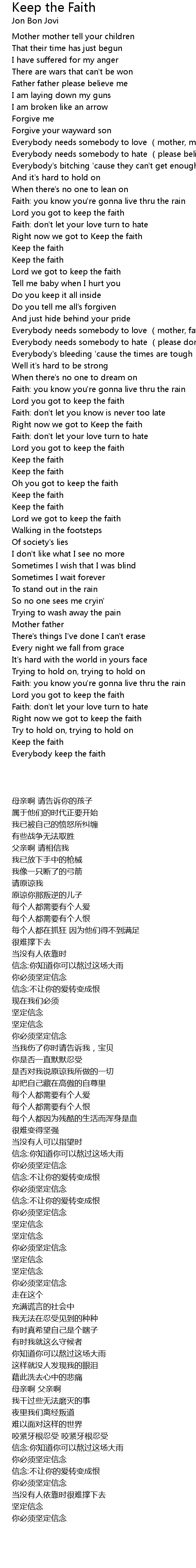 | [01:34.180] | Faith: don' t let your love turn to hate |