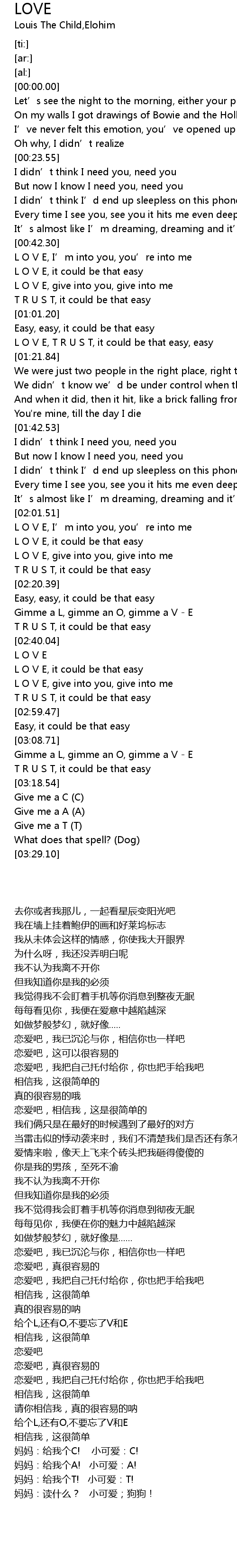 | [01:11.55] | L O V E, T R U S T, it could be that easy, easy |