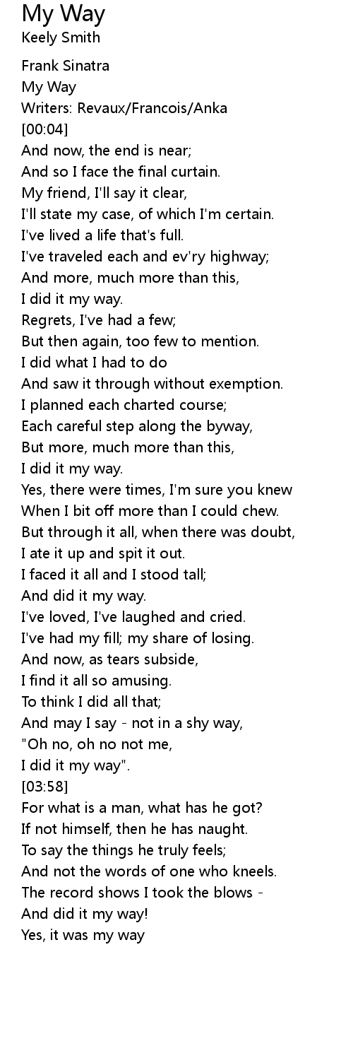 I did it my way". |