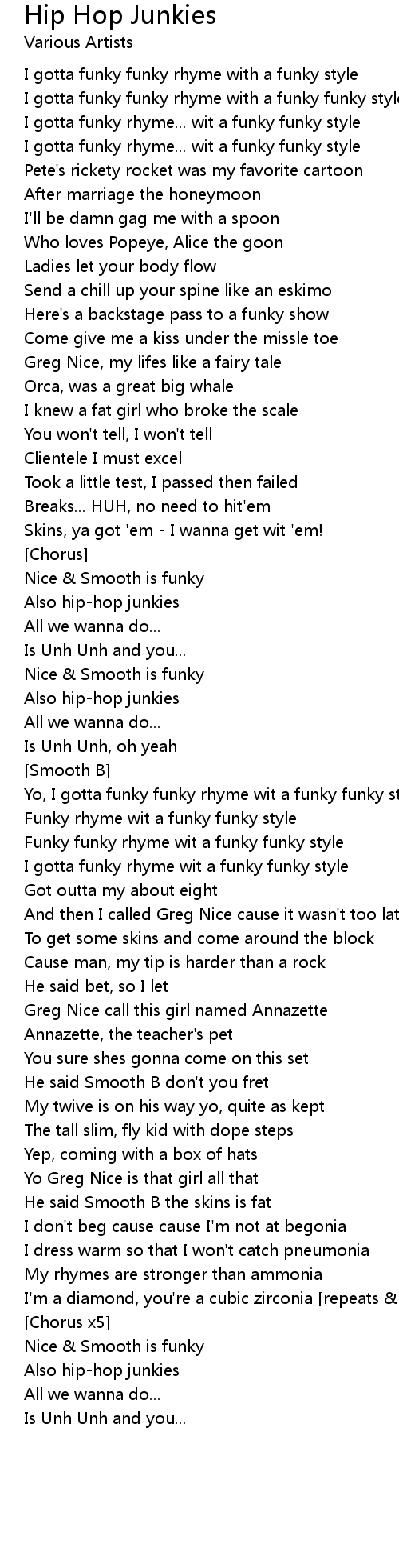 Yo, I gotta funky funky rhyme wit a funky funky style |