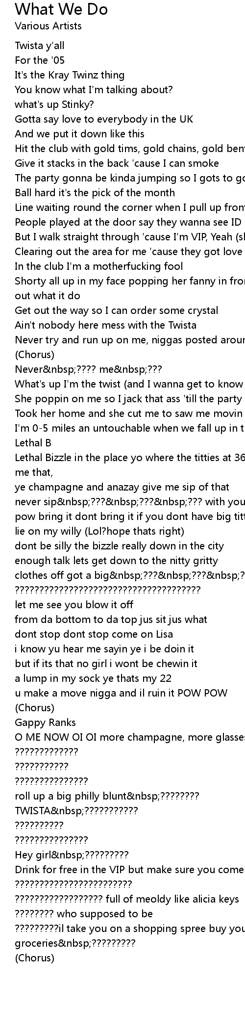 Lethal Bizzle in the place yo where the titties at 36 tripple H thats cool give me that,