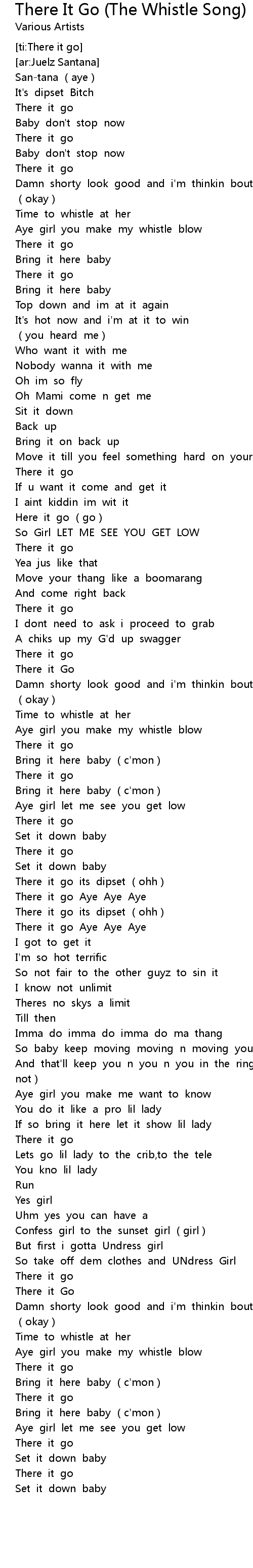 | [00:21.38] | Aye girl you make my whistle blow |