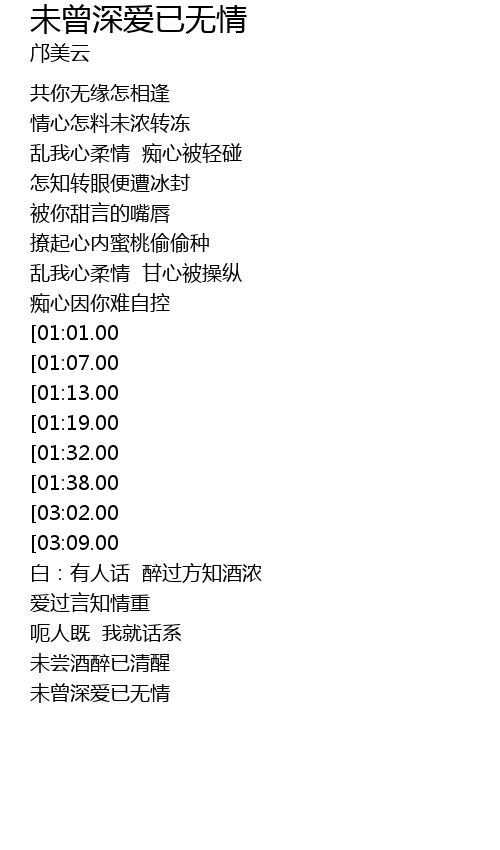 | [03:14.00][03:02.00][01:44.00] | 是我不留神 痴心被牵引 |