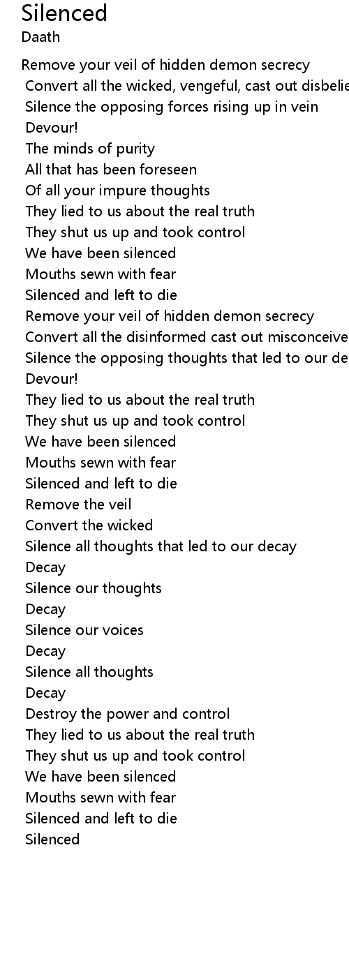 Silence the opposing thoughts that led to our decay |