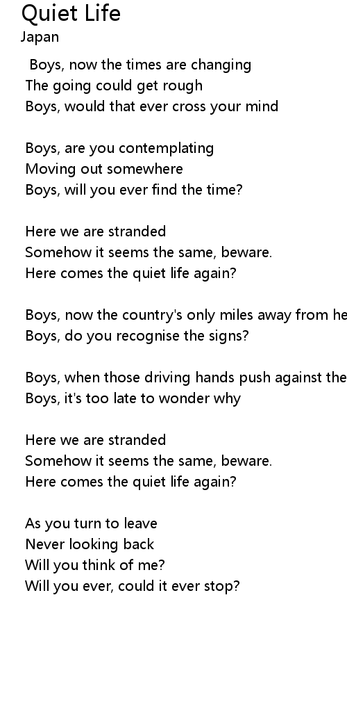 Here comes the quiet life again? |