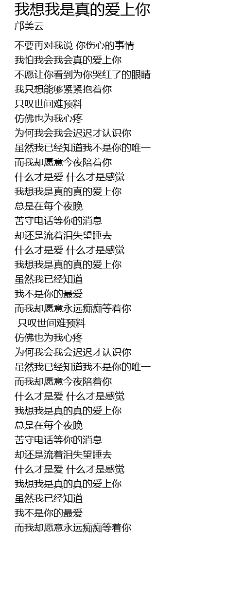 | [01:45.170] | 我想我是真的真的爱上你 |