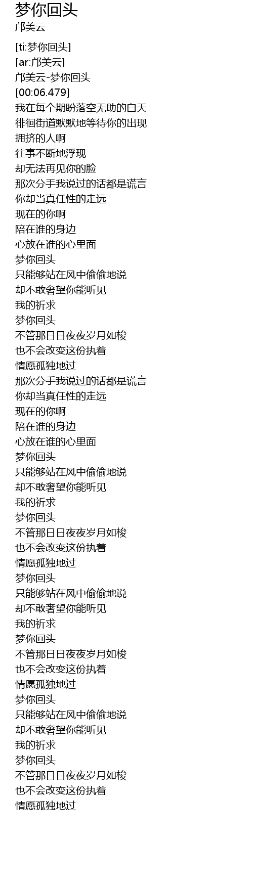 | [00:02.264] | kuàng měi yún mèng nǐ huí tóu |
