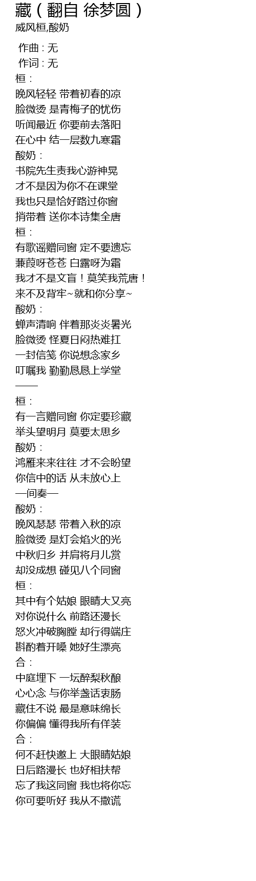 | [00:27.678] | yǒu gē yáo zèng tóng chuāng dìng bú yào yí wàng |