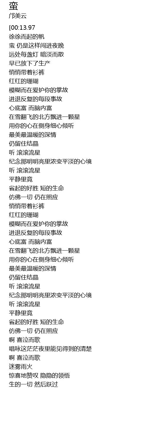 | [00:12.43][00:13.97] | qiao qiao dai lei de yan |