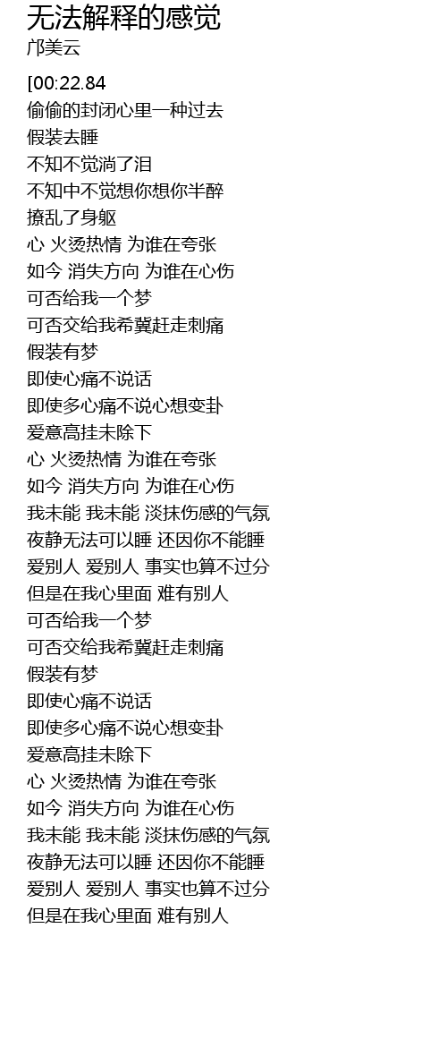 | [00:12.31][00:22.84] | 偷偷封闭心挂虑 |