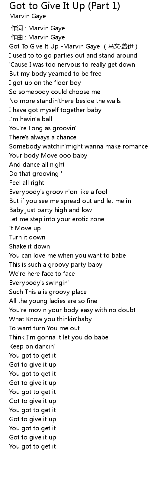 | [00:00.39] | Got To Give It Up -Marvin Gaye (马文·盖伊) |