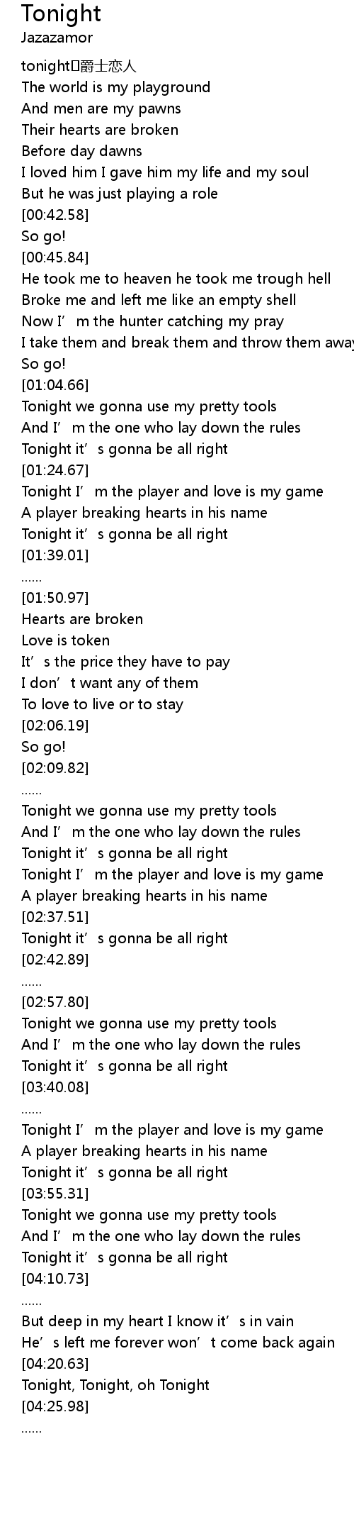 | [04:21.77] | Tonight, Tonight, oh Tonight |