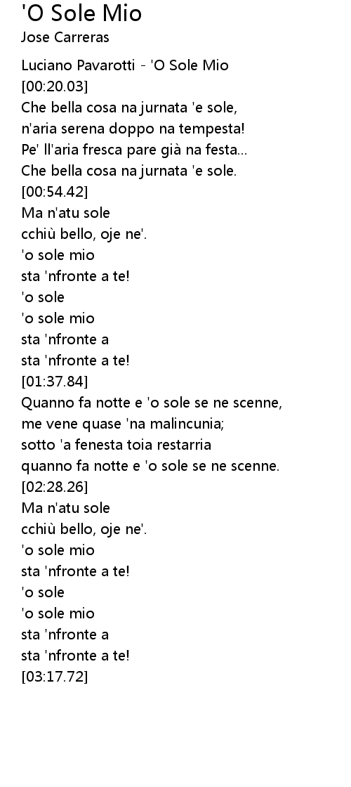 | [02:20.52] | quanno fa notte e ' o sole se ne scenne. |