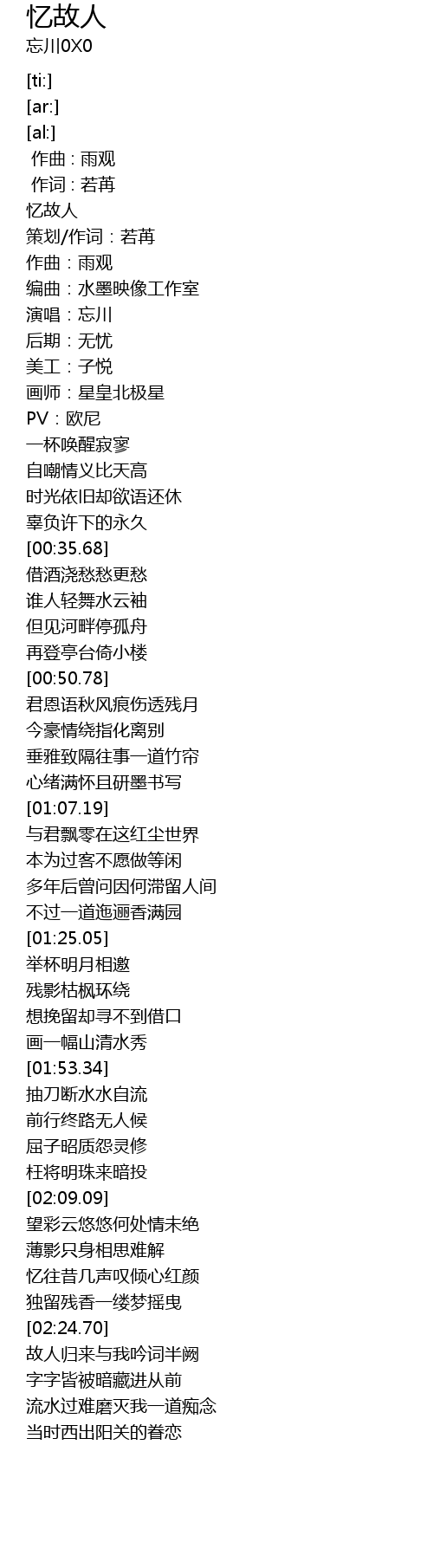 | [00:00.00] | 忆故人 |