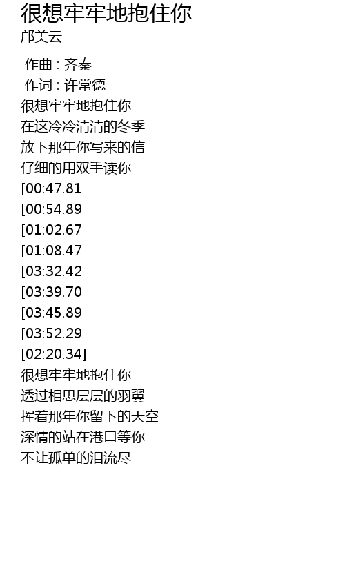 | [02:36.35][00:47.81] | 很想牢牢地抱住你 |