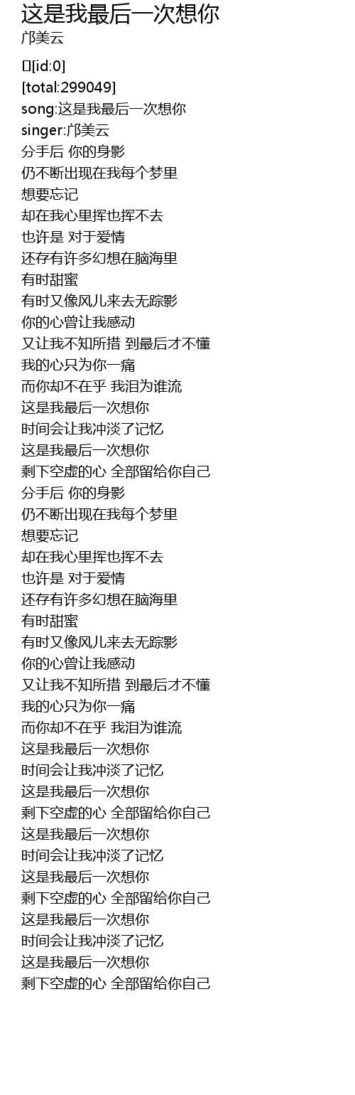 | [00:00.421] | song: zhè shì wǒ zuì hòu yī cì xiǎng nǐ |