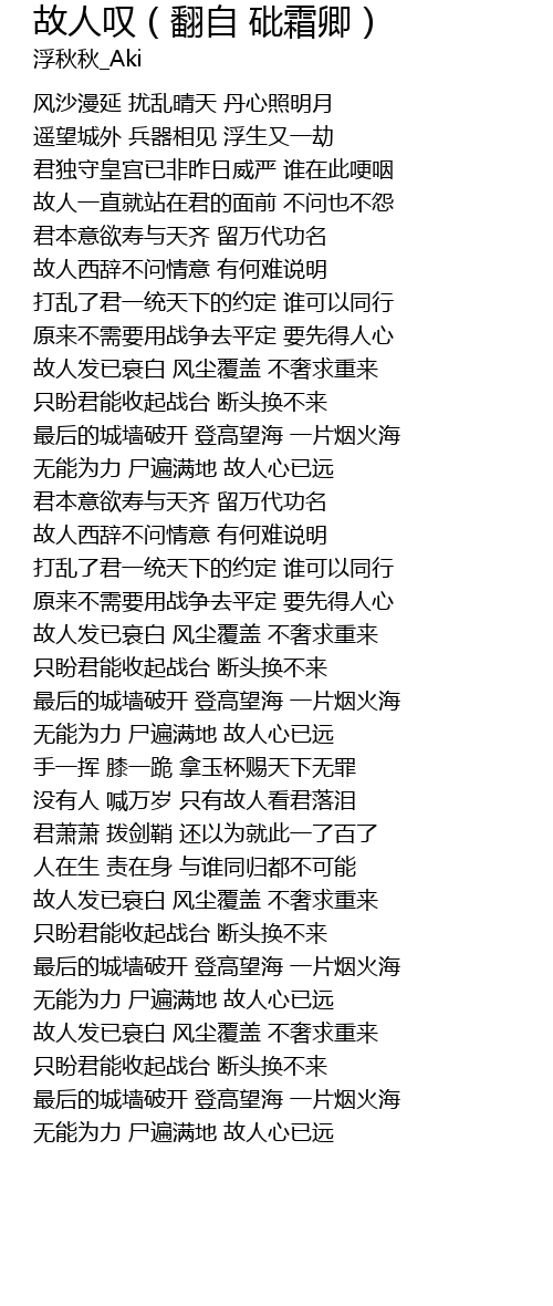 | [02:48.17] | 故人发已衰白 风尘覆盖 不奢求重来 |