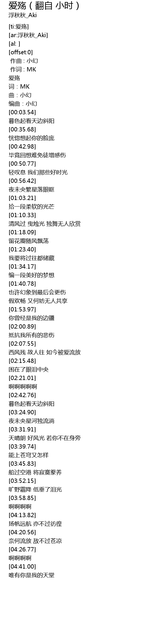 | [03:21.78] | mu se qi kan tian bian xie yang |