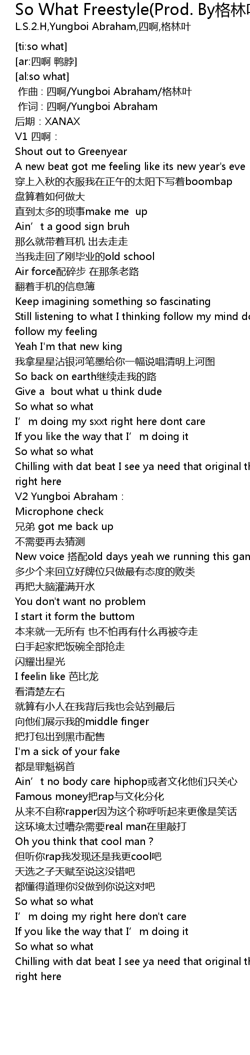| [01:50.48] | dàn tīng nǐ rap wǒ fā xiàn hái shì wǒ gèng cool ba |