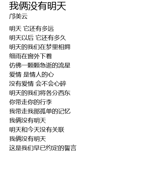 | wǒ liǎ méi yǒu míng tiān | |