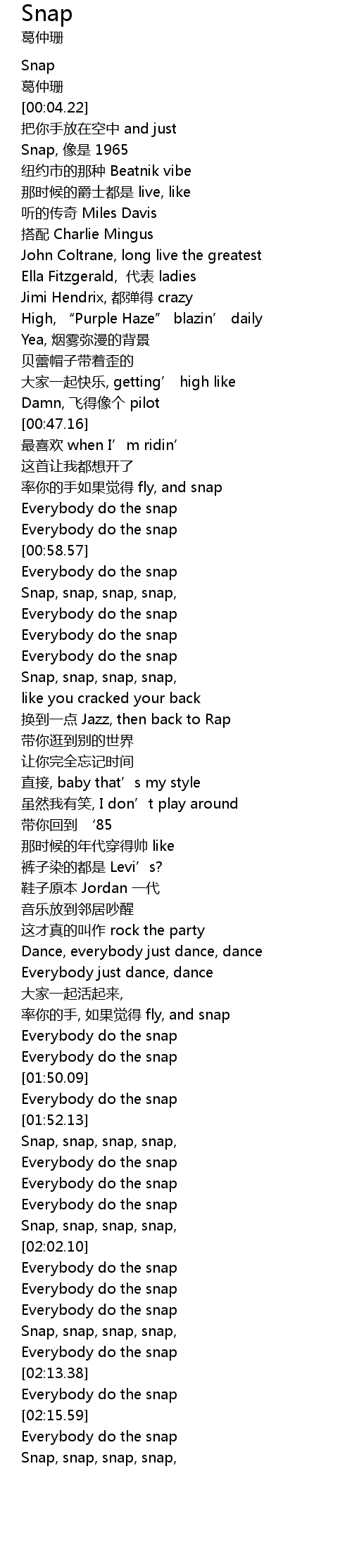 | [00:59.20] | Everybody do the snap |