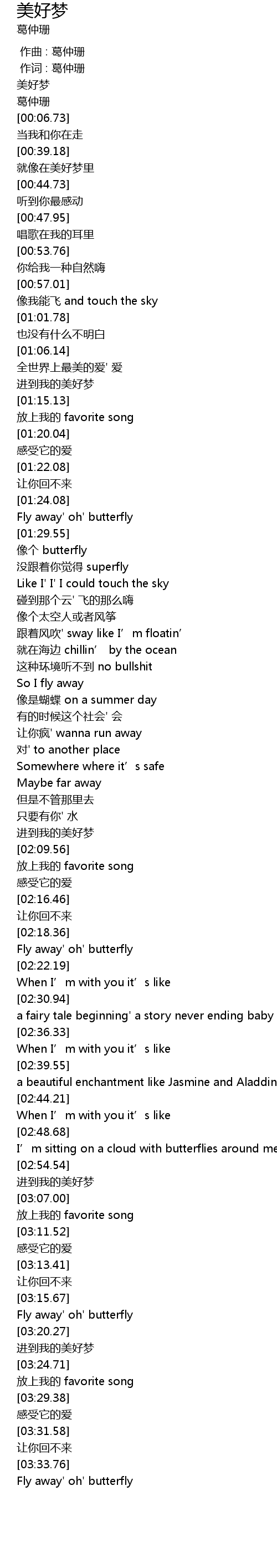 | [01:51.05] | 像是蝴蝶 on a summer day |
