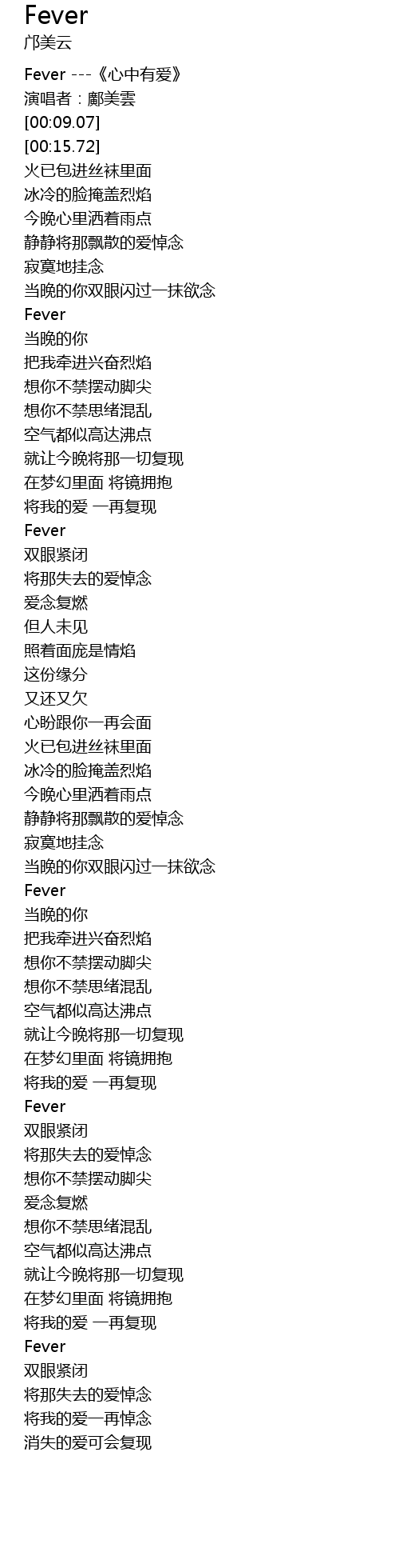 | [00:01.06] | Fever ---《心中有爱》 |