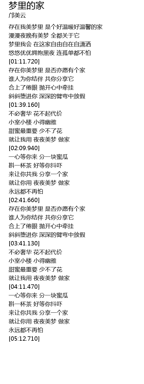 | [00:46.190] | 存在我美梦里 是个好温暖好温馨的家 |