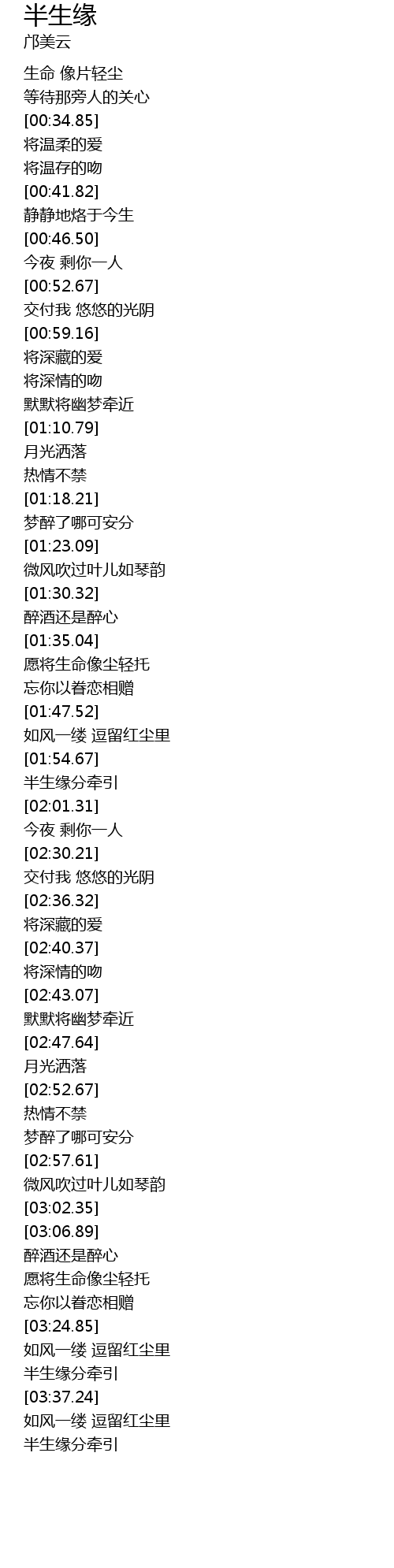 | [03:44.46] | bàn shēng yuán fèn qiān yǐn |